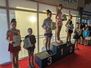 In Gruppe 1-5 folgten bei den Eismäusen Carla B., Hana V. und Sadan N., welche erst mit dem Eislaufen begonnen hatten, und zeigten was sie in der kurzen Zeit unter Trainerin Frau Gulyas bereits gelernt hatten.