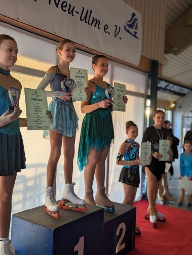 Bei strahlendem Wetter gingen unsere Eiskunstläuferinnen am 3.Februar 2024 bei unserem hauseigenen „Eispokal am Donaubad“ an den Start.